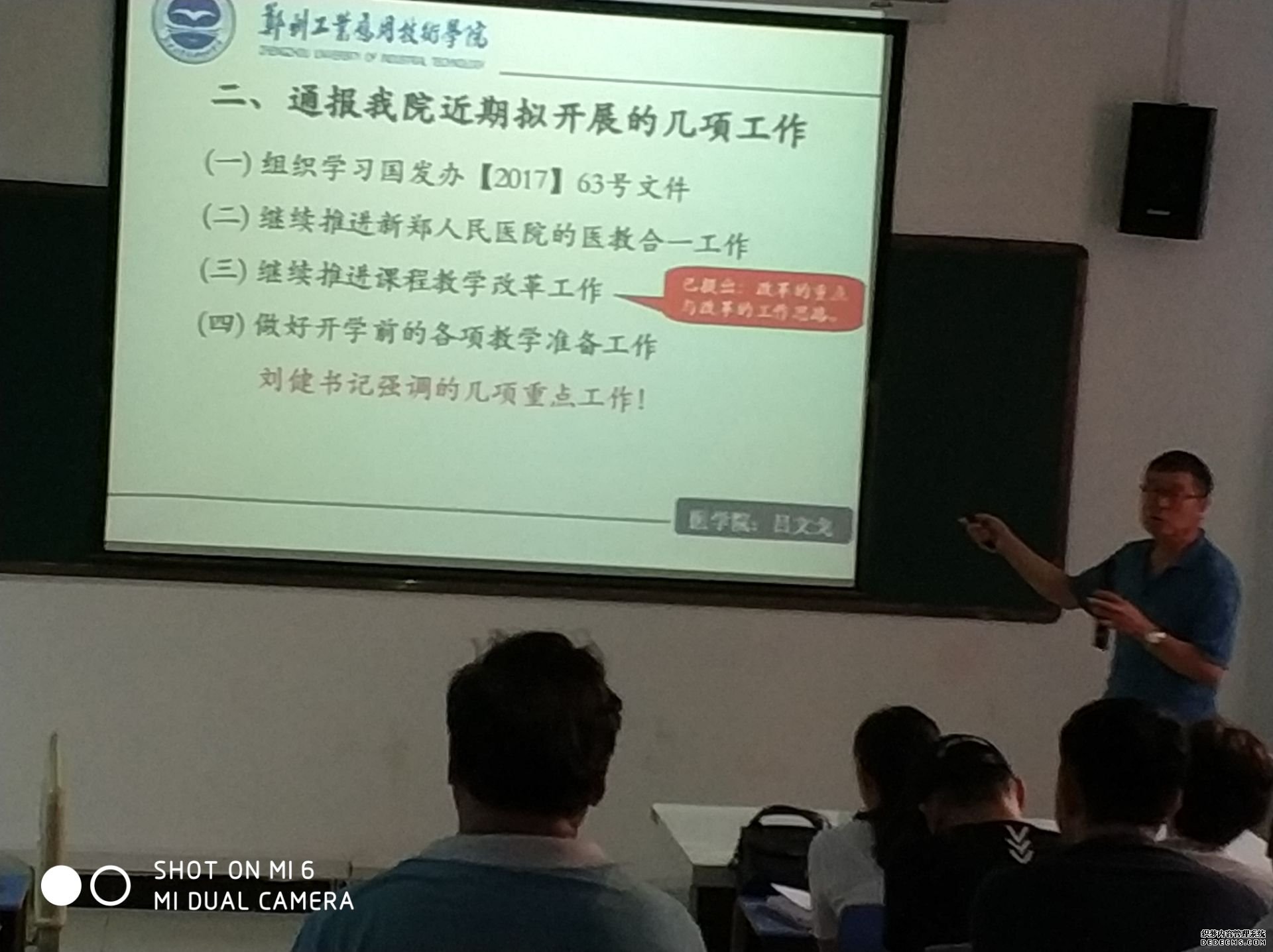 2017年8月26日下午我院在医学院北207示教室召开了2017-2018学年第一次教学工作会议,学院领导班子成员、教研室主任、实验室主任及部分教师代表参加了此次会议。会议内容主要传达了集团董事会扩大会议精神,并对医学院新学期期初拟开展的工作进行了进一步安排。会上,吕院长对董事会扩大会议的重点进行了细化的讲解,传达了张校长在会议上宣读的文件内容并对姚校长的发言进行了解读,并传达了徐朝阳董事长与刘建书记的发言内容。接下来吕院长针对我院近期工作重点进行了细化安排,提出对(国办发〔2017〕63号)深化学习的要求,并强调医教合一事宜的进一步是实施方向,以及对新学期课改工作和新学期的各项教学准备工作的推行进行了安排。