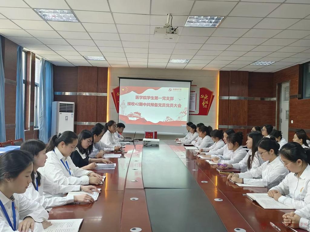 为进一步加强党组织建设,充实新锐力量,提升党组织的向心力与战斗力。医学院学生第一党支部于2025年5月28日在医学楼北209会议室召开2025年上半年中共预备党员接收党员大会,会议由党支部书记刘旭霞同志主持,党支部全体成员参与会议。