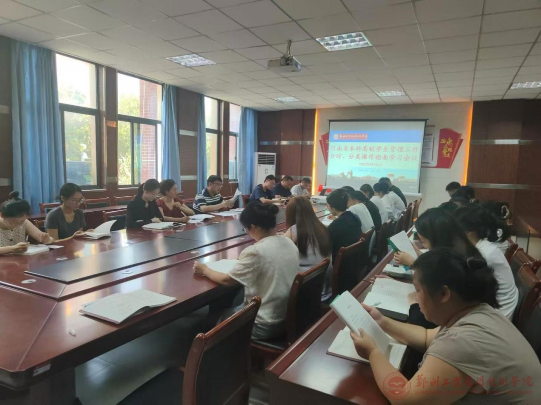 为深入贯彻落实河南省教育厅关于本科高校学生管理工作的最新要求,准确把握新时代学生工作的新特点、新规律,2025年8月22日下午,医学院于医学楼北209开展了《河南省本科高校学生管理工作分时、分类操作指南》(以下简称《指南》)专题学习会议。本次会议旨在系统学习、深刻领会《指南》的核心要义与操作规范,以期进一步提升我院学生管理工作的精细化、科学化与专业化水平。会议由医学院党委书记、学生管理副院长王宇主持,分团委书记杨春红及医学院全体辅导员参加了此次学习研讨。