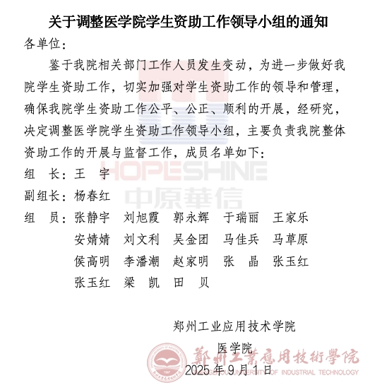 关于调整医学院学生资助工作领导小组的通知