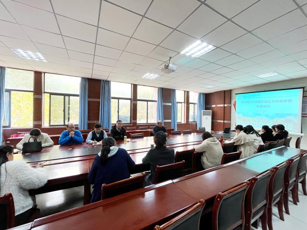 为从选题源头把控学术质量,为后续论文指导与答辩工作筑牢基础,10月29日下午,医学院在北209会议室召开2026届学生毕业论文命题审查专项会议。医学院院长、学术委员会成员及各教研室主任参会,围绕本届学生毕业论文题目展开集中审查。